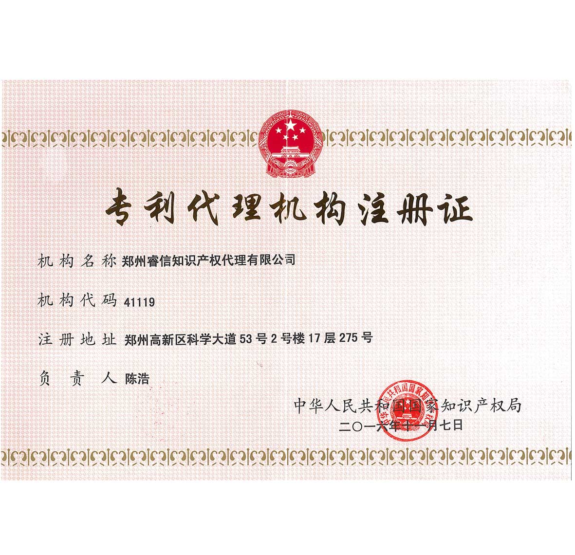 公司在中華全國專利代理人協(xié)會(huì)改選中被選為常務(wù)理事單位,是河南省唯一的常務(wù)理事單位。